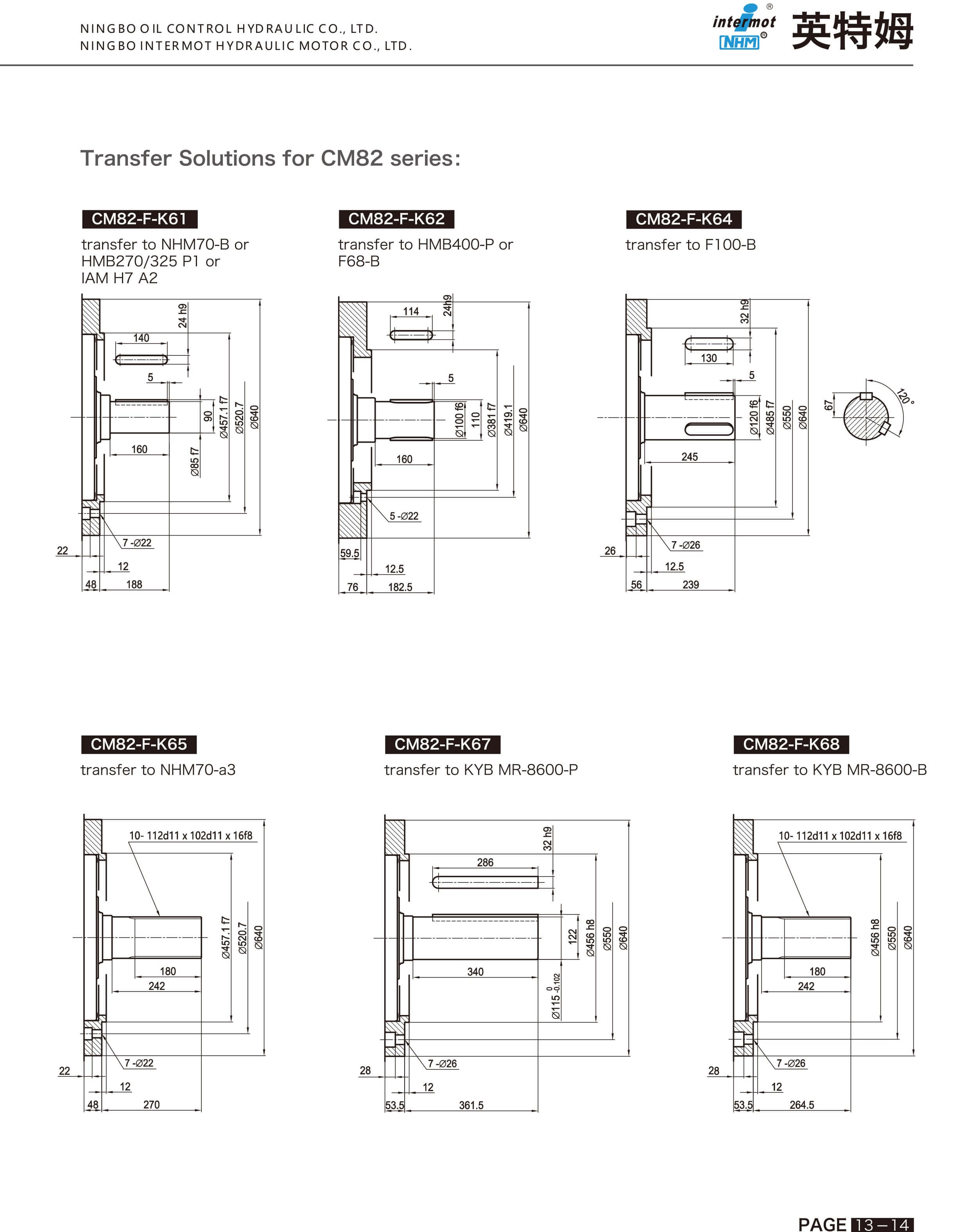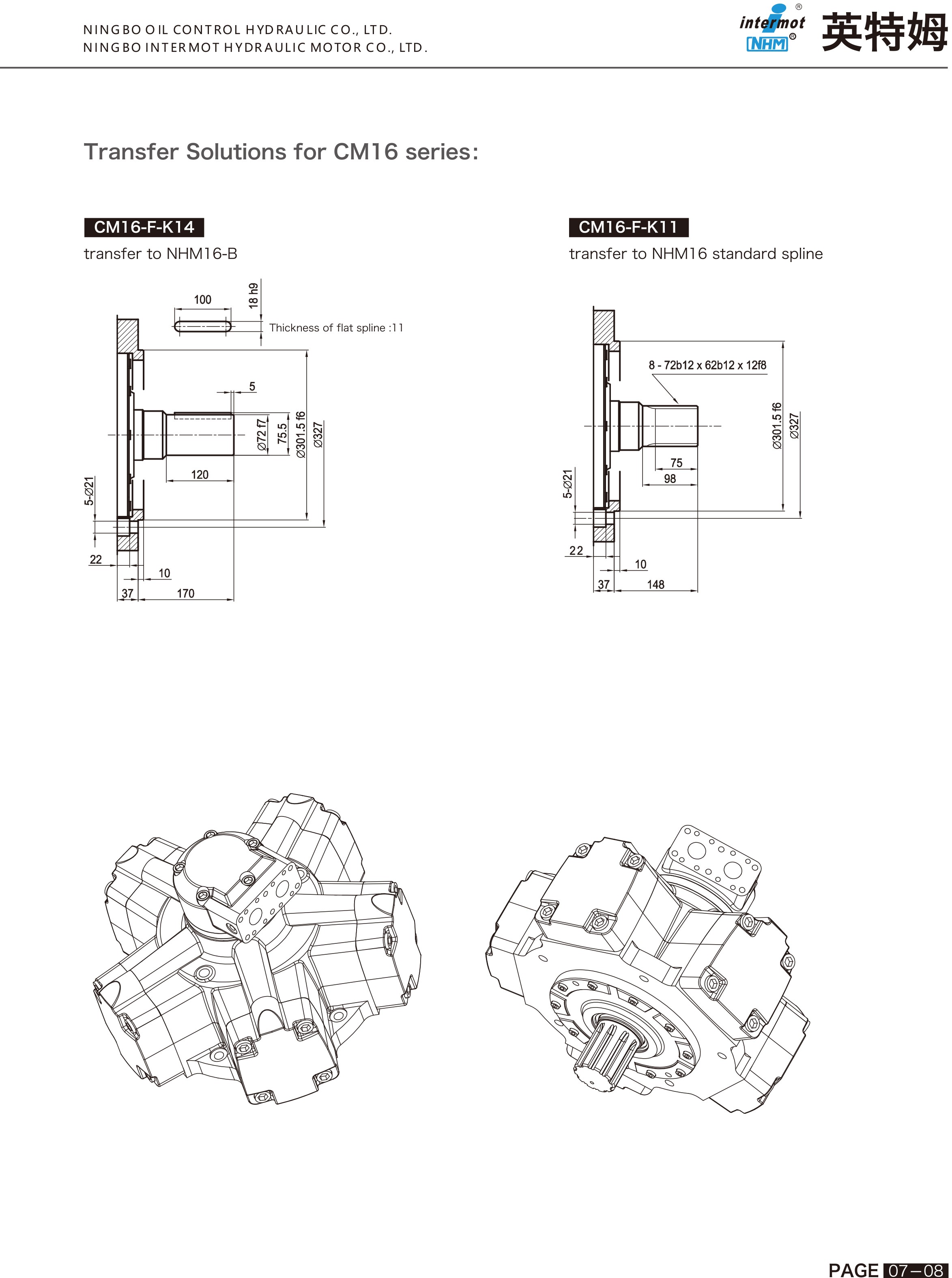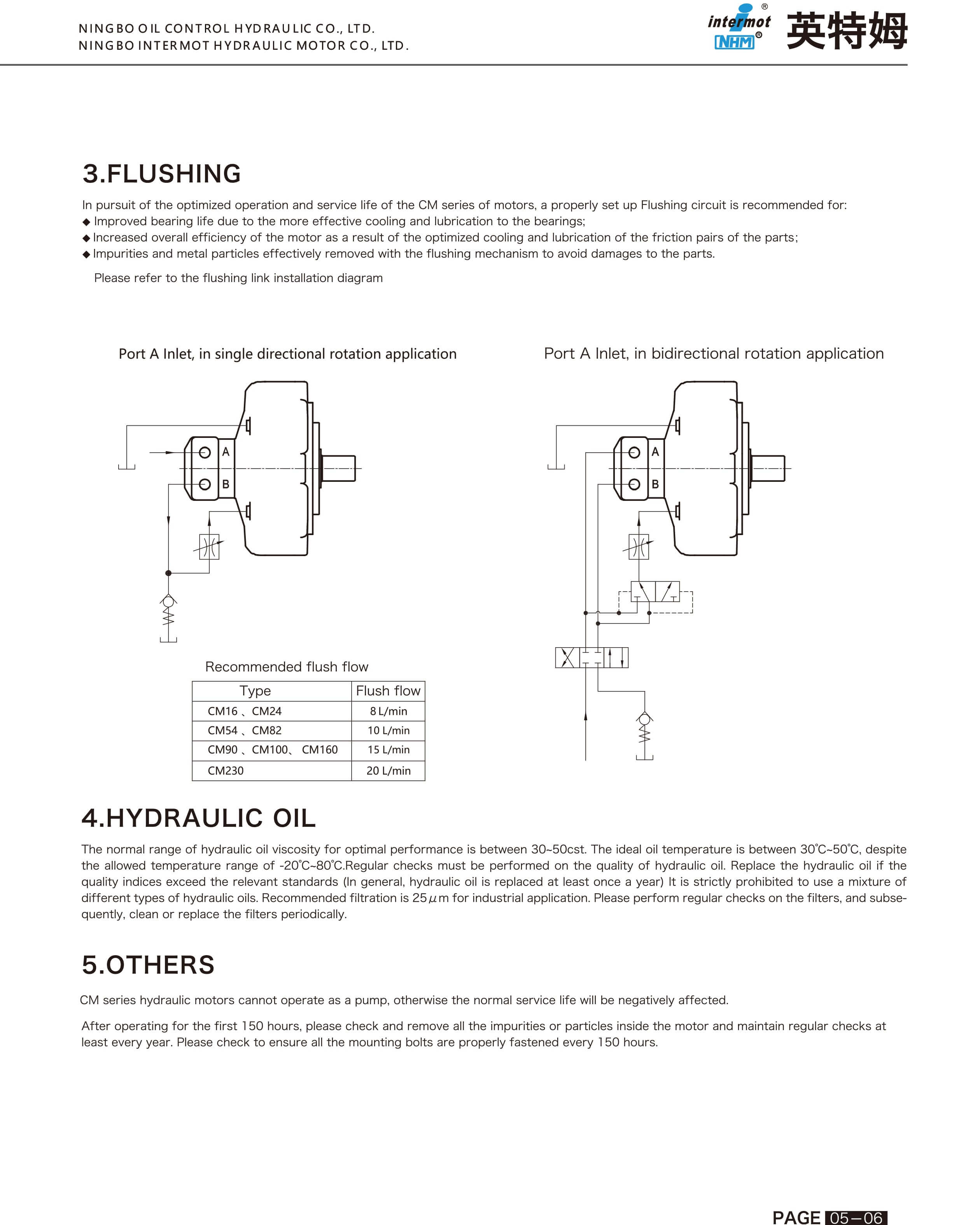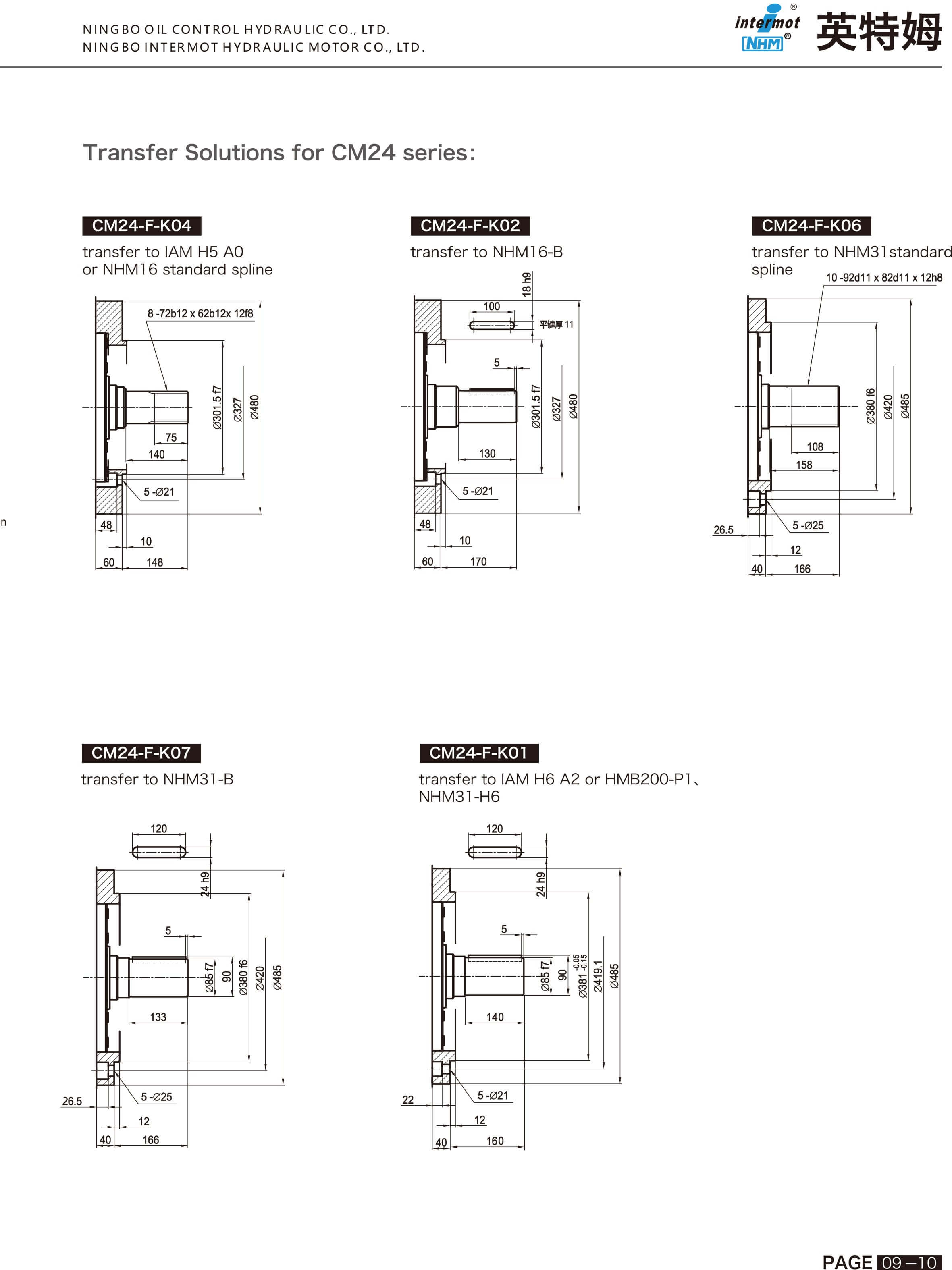 CM series hydraulic motors are new structural hydraulic motors introduced by our company. These motors have the advantages of high reliability, high efficiency, long life, low noise, large displacement and wide speed range, so that they can be widely used in the hydraulic transmission systems in a number of industries such as marine, plastic machinery, mining, construction, metallurgy, petroleum, and geological prospecting, etc..