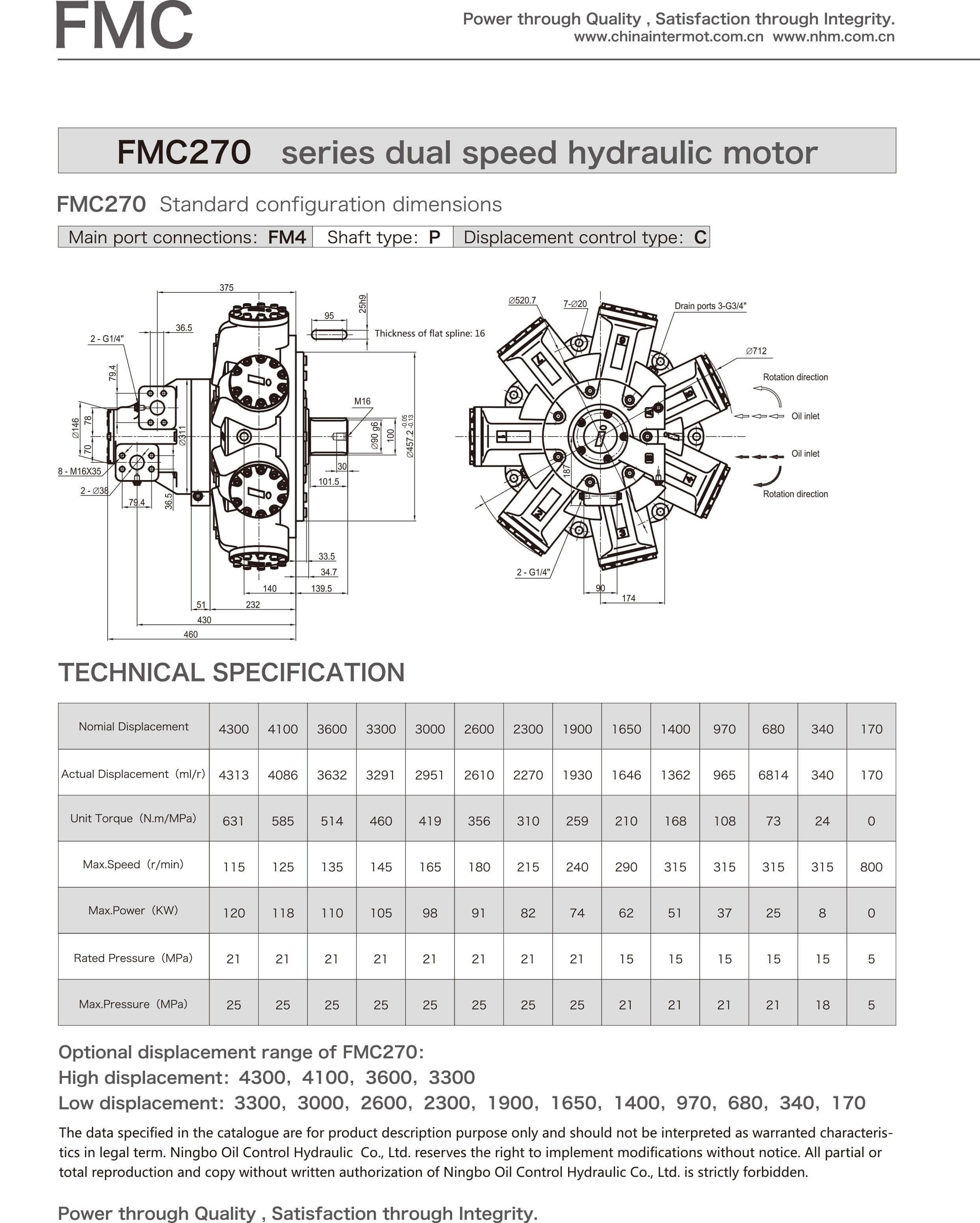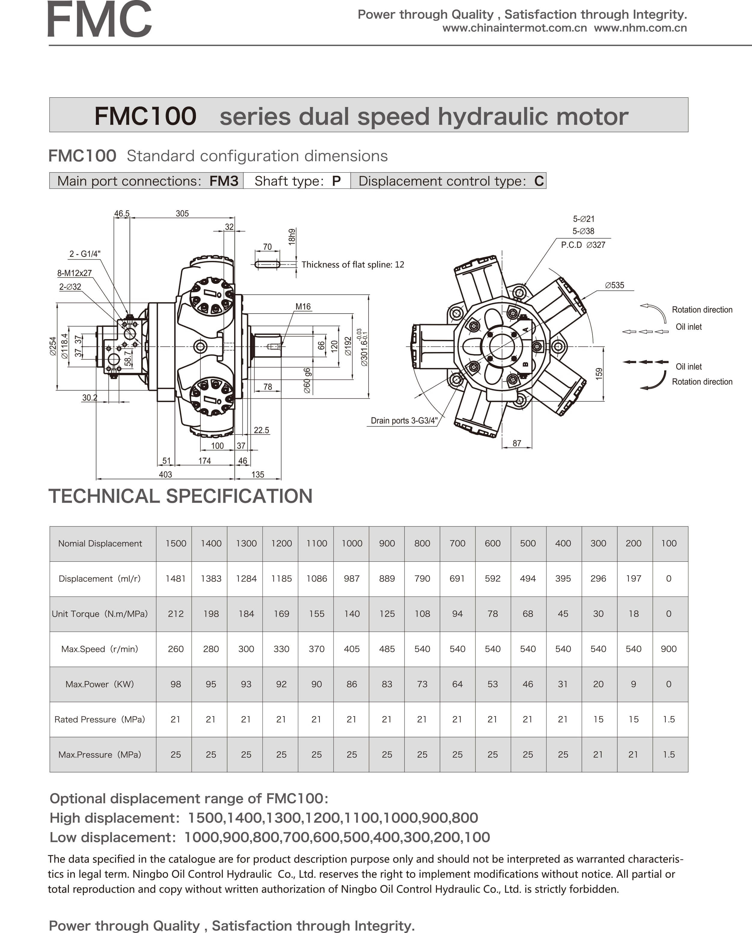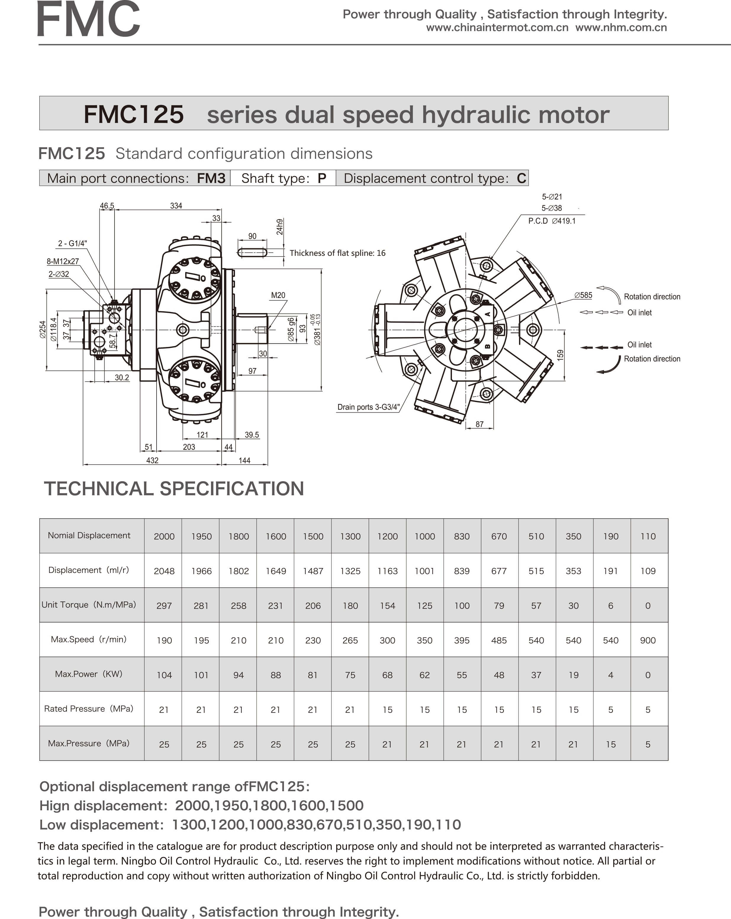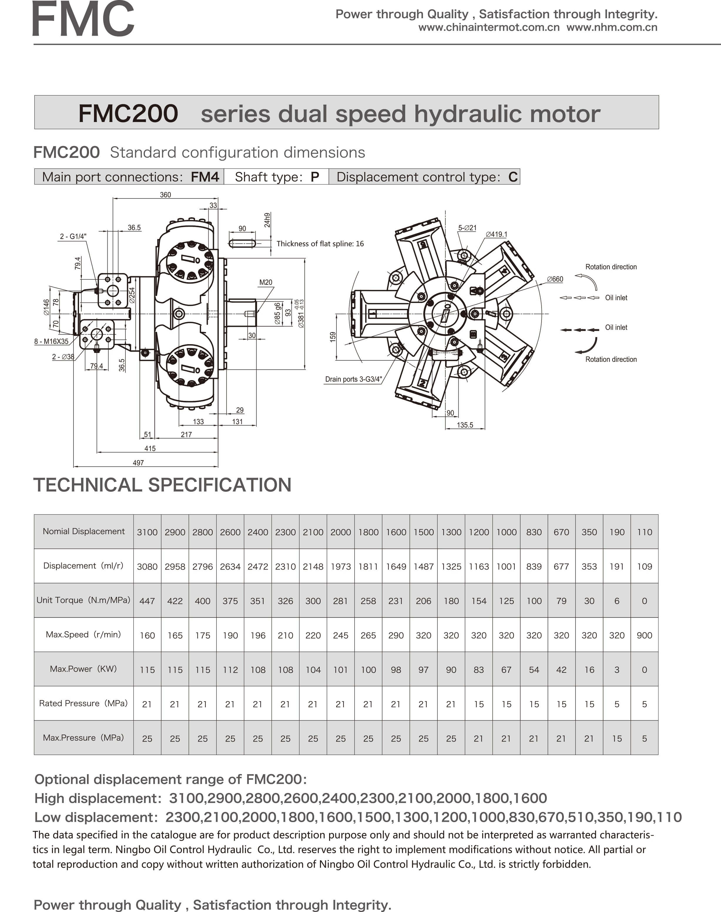 FMC series dual displacement hydraulic motor is an upgrade of the FMB series fixed displacement hydraulic motor.The FMC series dual displacement hydraulic motor enables users to select the required displacement for a wide range of special working conditions,meanwhile get high displacement and low displacement switching.