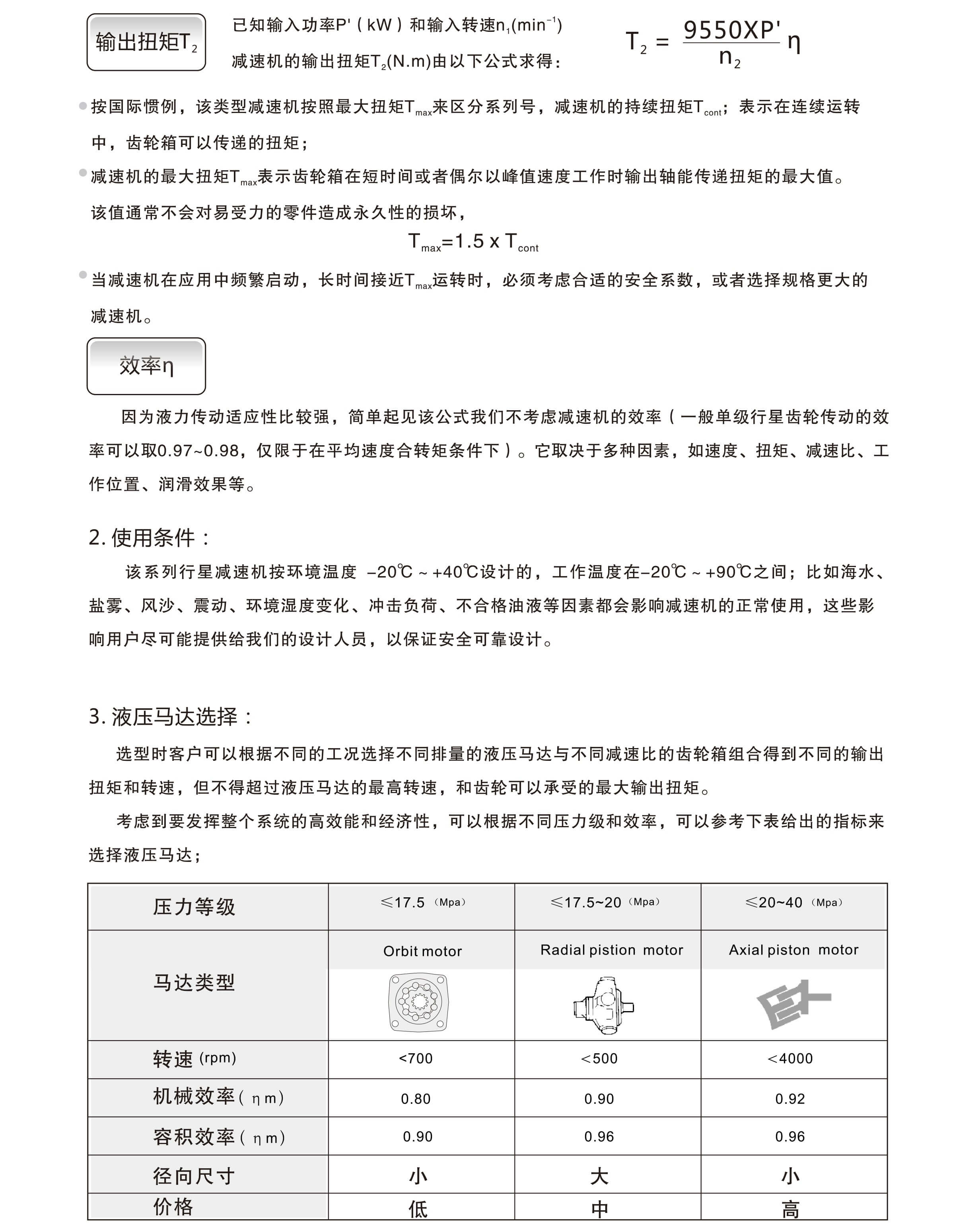 3.设计有多种减速比,可以通过排量的配置,实现多种扭矩和转速的选择。