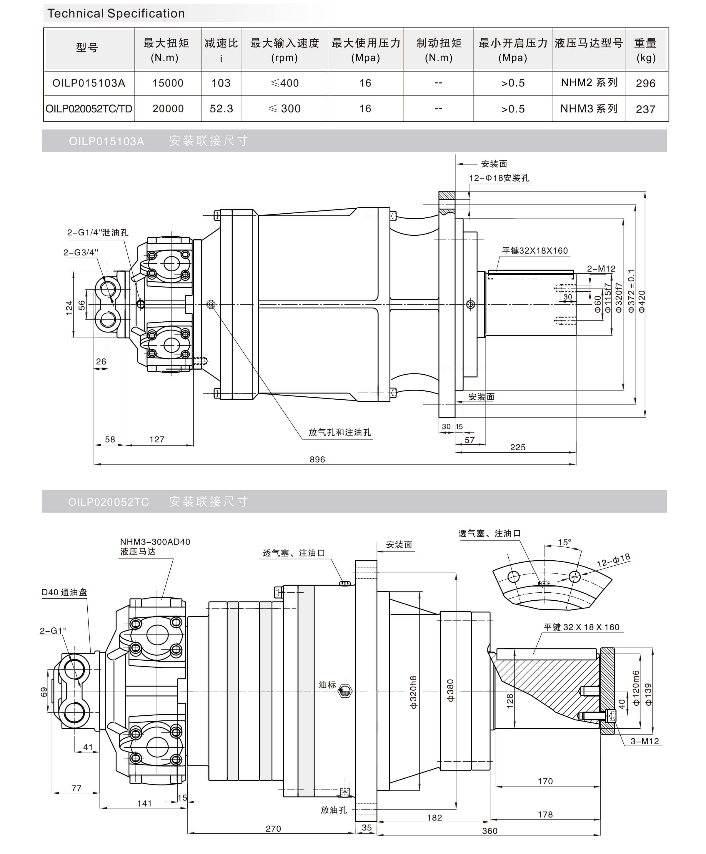 1.OILP系列减速机采用NGW二级或三级齿轮减速传动,能实现高效率传递,低噪音运行。